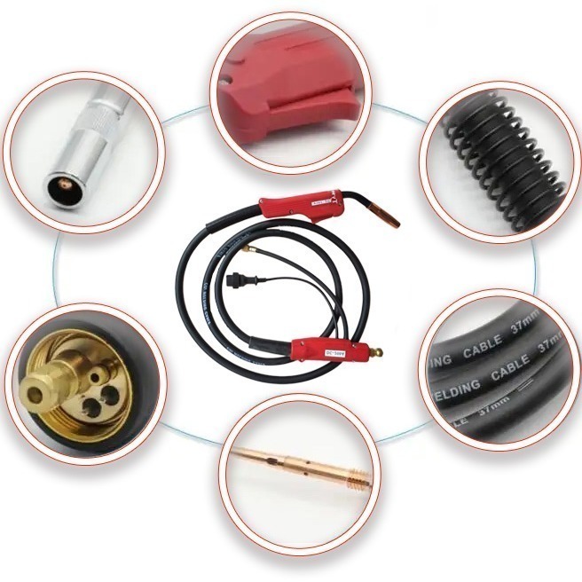 MIG welding torches and welding cables are critical components that directly affect welding precision and operator comfort. A well-designed torch ensures stable wire feeding, while high-quality welding cables provide consistent current flow.
